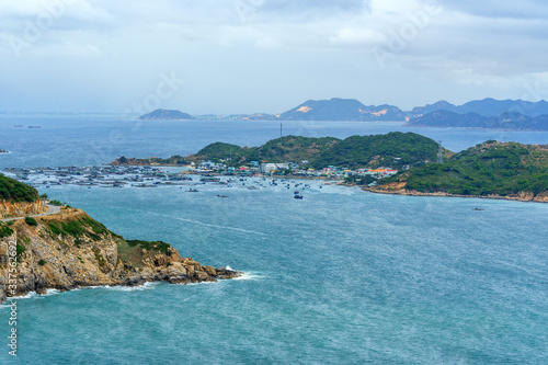 © Hien Phung, Fototapeta premium Aerial view of Binh Hung island and road from Cam Ranh to Phan Rang, Ninh Thuan, Vietnam