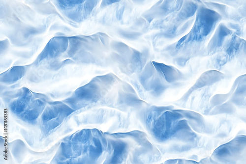 Obraz premium Aerial view of blue and white abstract wavy pattern resembling clouds or...