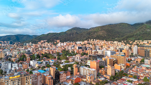 © Jhampier Giron, Fototapeta premium Aerial View of Bogotá, Colombia with Urban Landscape and Surrounding Mountains