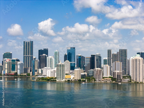 © be free, Fototapeta premium Aerial view of Brickell skyscrapers. Modern cityscape of downtown Miami. Panoramic Miami skyline above the coastline.