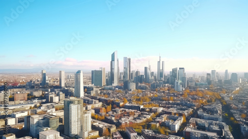 © evening_tao, Fototapeta premium Aerial View of Bustling City on a Bright Sunny Day