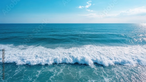 Fototapeta premium Aerial view of calm ocean, deep blue water perfect for a relaxing experience.