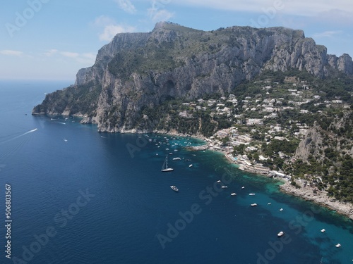 Fototapeta premium Aerial view of Capri, an island on the south side of the Gulf of Naples in...