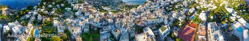 © jovannig, Naklejka premium Aerial view of Capri homes and cityscape at summer sunset, Campania - Italy
