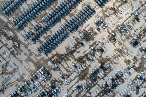 © Bob, Obraz premium Aerial view of car parking top view