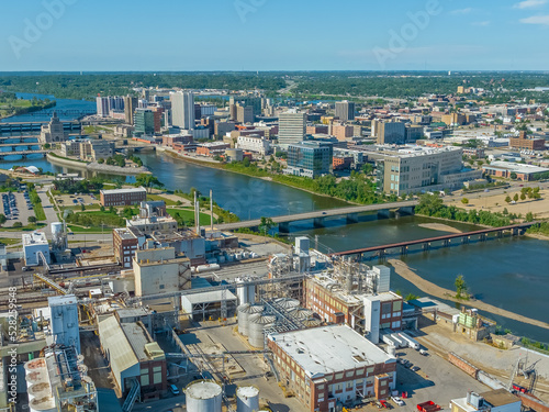 © Aaron, Obraz premium Aerial View of Cedar Rapids Downtown Skyline