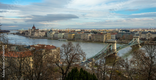 © derege, Obraz premium Aerial view of Chain Bridge over Danube river in Budapest