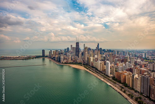 © Aitcheeboy, Naklejka premium Aerial view of Chicago waterfront