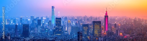 © Fajar, Fototapeta premium Aerial View of City at Dusk