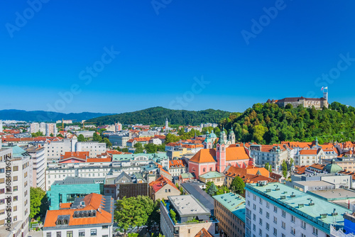 Obraz premium Aerial view of city center of Ljubljana, Slovenia, Europe