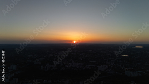 © devilvet, Fototapeta premium Aerial view of city landscape at sunset