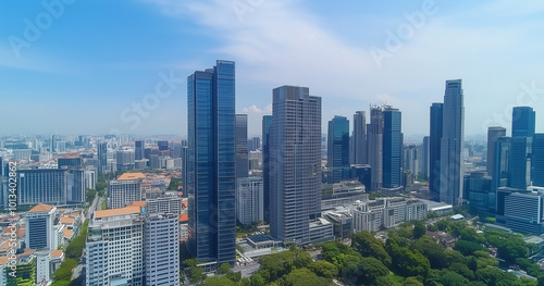 Obraz premium Aerial View of City Skyline and High-Rise Buildings Under Blue Sky and White...