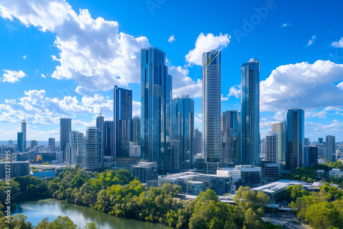 © song, Fototapeta premium Aerial View of City Skyline with Skyscrapers and Buildings