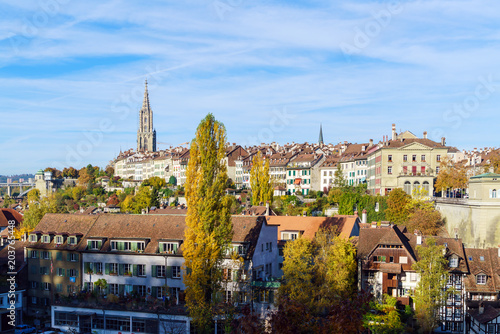 Naklejka premium Aerial view of city with Minster gothic cathedral, Bern, Switzerland