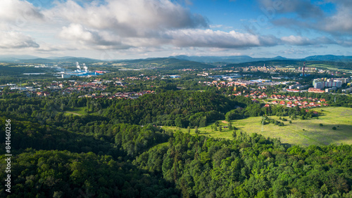 © Lukasz Czajkowski, Fototapeta premium Aerial View of Cityscape and Forest