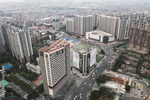 © Yan, Fototapeta premium Aerial view of cityscape in Guangzhou China