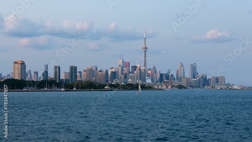 Obraz premium Aerial view of cityscape Toronto surrounded by buildings and water