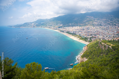 © dtatiana, Naklejka premium Aerial view of Cleopatra Beach from Alanya Castle, Turkey