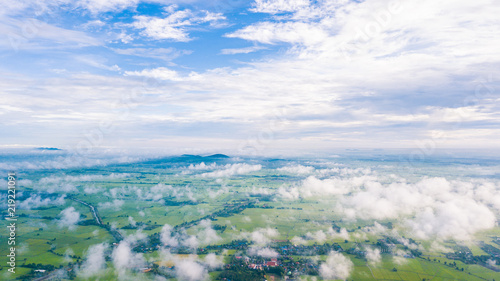 © nipastock, Fototapeta premium Aerial view of Cloudy sky high above the earth