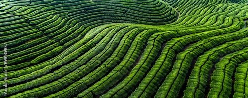 © nitiroj, Fototapeta premium Aerial view of coffee plantation terraces, structured and green, Coffee plantation terraces, aesthetic farming