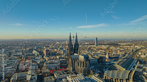 Naklejka premium Aerial view of Cologne city, Germany with Cologne Cathedral
