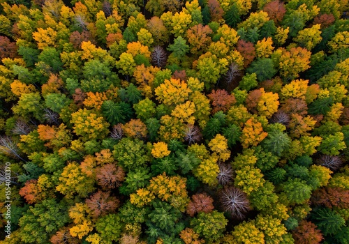 © Ai Images Stock, Naklejka premium Aerial view of colorful autumn forest canopy