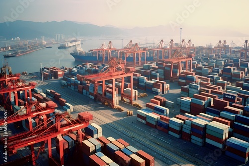 © A Denny Syahputra, Obraz premium Aerial view of container port