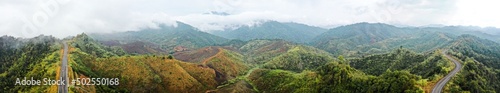 © pierrick, Fototapeta premium Aerial view of Curvy road number 3 in the mountain of Pua district, Nan province, Thailand