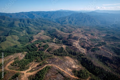 Fototapeta premium Aerial View of Deforested Mountains with Renewable Forestry Land