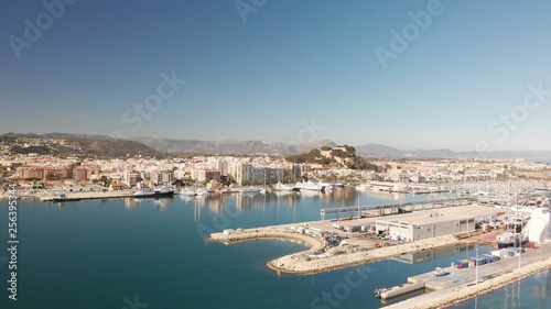 Fototapeta premium Aerial view of Denia port. The city and the Denia castle in the background.
