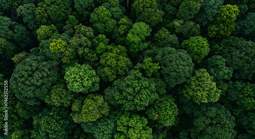 © OmRioRio, Naklejka premium Aerial View of Dense Green Forest