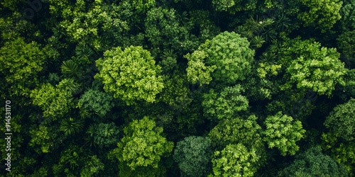 © Alex, Naklejka premium Aerial View of Dense Green Forest from Drone Generative AI