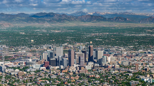© knowlesgallery, Fototapeta premium Aerial view of Denver Colorado with Rocky mountain backdrop
