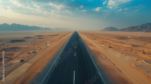 © horizon, Fototapeta premium Aerial view of desert road in Saudi Arabia.