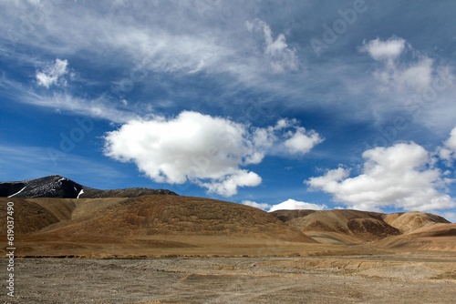 © Hazel Ma1/Wirestock Creators, Fototapeta premium Aerial view of desert surrounded by mountains