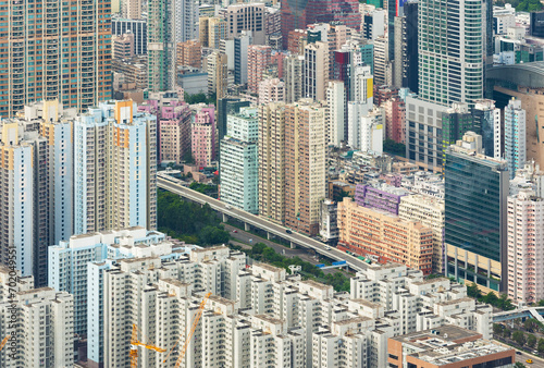 © leeyiutung, Naklejka premium Aerial view of downtown district of Hong Kong City