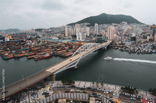 © Phuong, Obraz premium Aerial view of downtown on coast in Busan, S. Korea