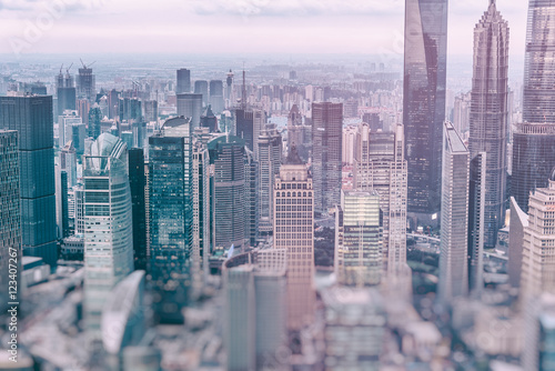 © fanjianhua, Obraz premium Aerial view of downtown Shanghai,China.