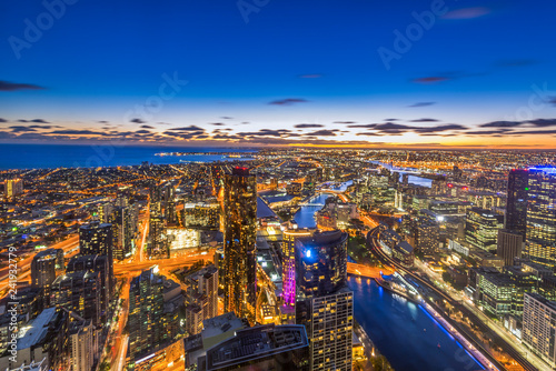 Obraz premium Aerial view of dramatic night sky at Melbourne city skyline
