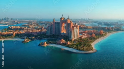 © AGUNG, Obraz premium Aerial view of Dubai resort complex on a sunny day