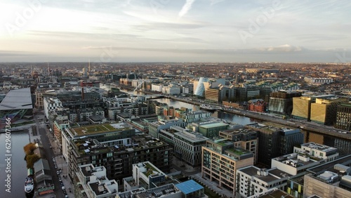 Fototapeta premium Aerial view of Dublin City with urban buildings and houses near Grand Canal