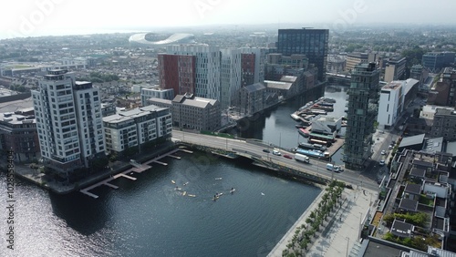 © Wirestock, Fototapeta premium Aerial view of Dublin's Docklands
