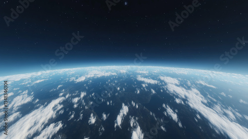 © Unic, Obraz premium Aerial View of Earth from Space with Blue Atmosphere and Cloud Formations Showing Global Perspective and Natural Beauty in Outer Space