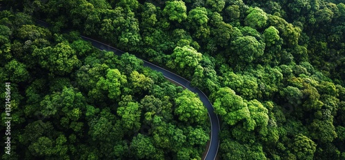 Obraz premium Aerial View of Electric Car on Green Forest Road in Sustainable Environment