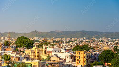 Fototapeta premium Aerial view of famous tourist city of Udaipur, Rajasthan, India.