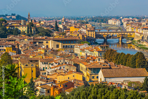 Fototapeta premium Aerial view of Florence city, tiled roof of Florence, Toscana, Italy