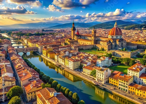 © prapatsorn, Fototapeta premium Aerial View of Florence, Italy: Duomo, Ponte Vecchio, and Arno River