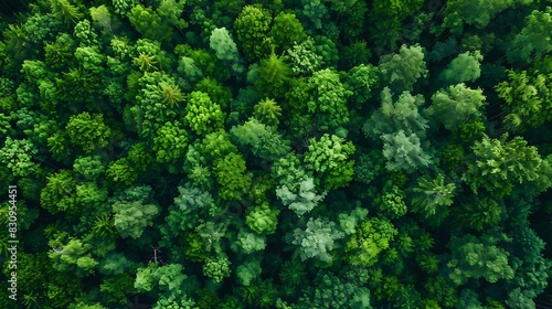 Fototapeta premium Aerial view of forestecosystem and healthy environment Texture of green tree forest : Generative AI