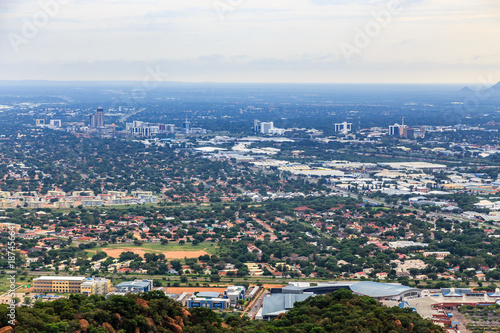 © vadim.nefedov, Fototapeta premium Aerial view of Gaborone city downtown spread out over the savannah, Gaborone, Botswana, Africa, 2017