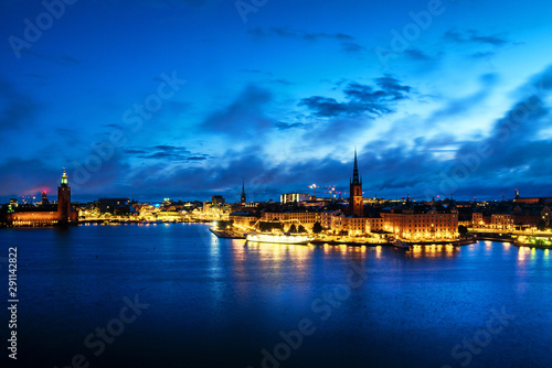 © Madrugada Verde, Naklejka premium Aerial view of Gamla Stan in Stockholm, Sweden with landmarks like Riddarholm Church